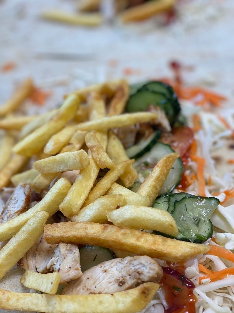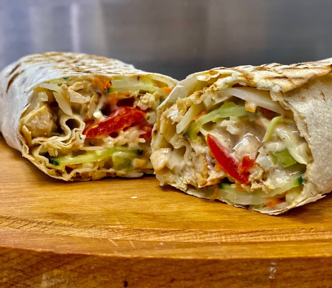 Румяная курица с гриля + фирменный соус + маринованный лук,